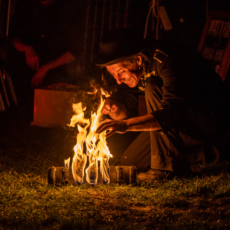 Voor de ogen van zijn verbaasde publiek gaat hij de strijd aan met het vuur, zijn eerste grote liefde en mentor, maar ook ‘t begin & ‘t eind. Een majestueuze solovoorstelling door een artiest die zich diep verbonden voelt met het vuur, vol hoogstaande techniek en imposante vlammen.